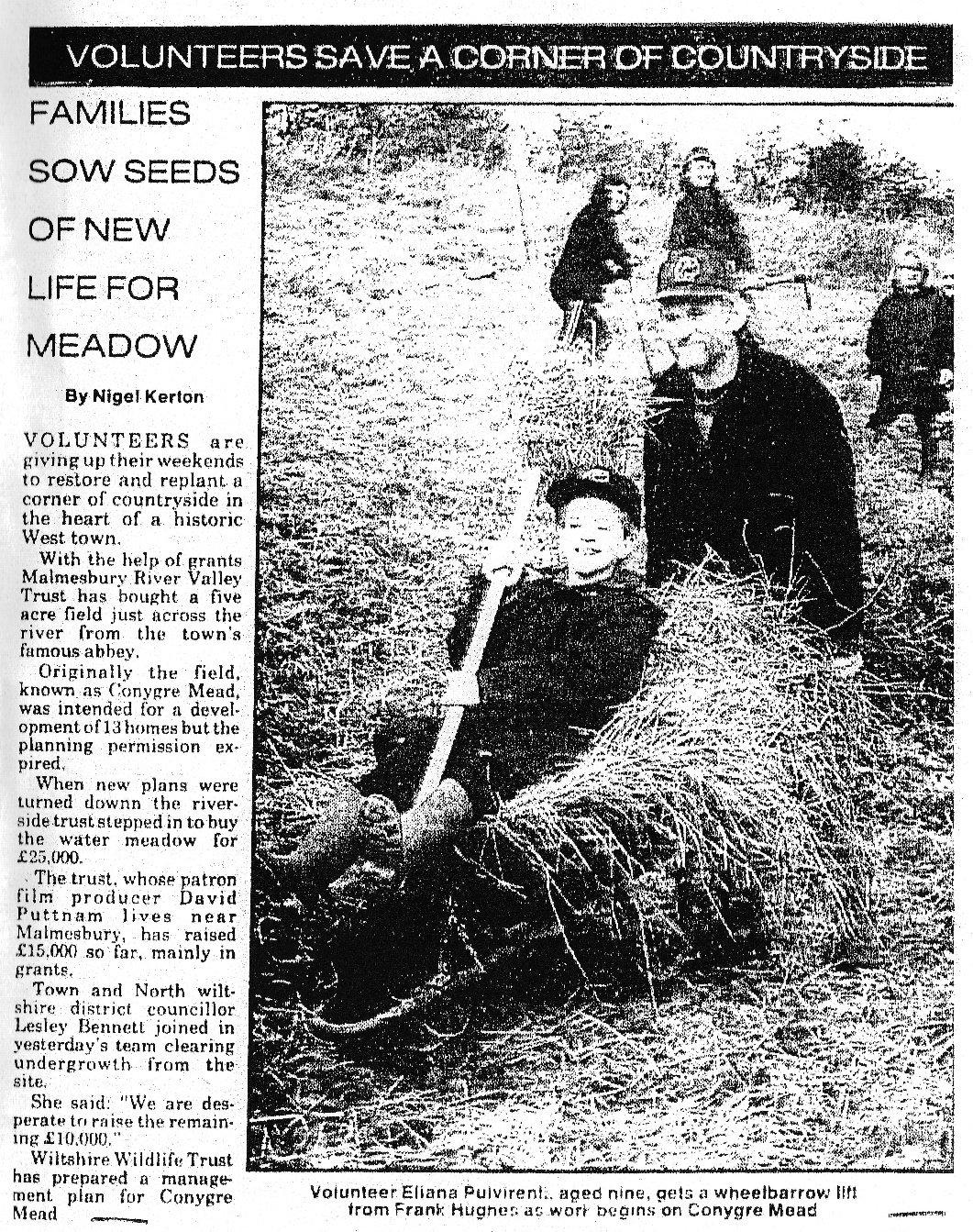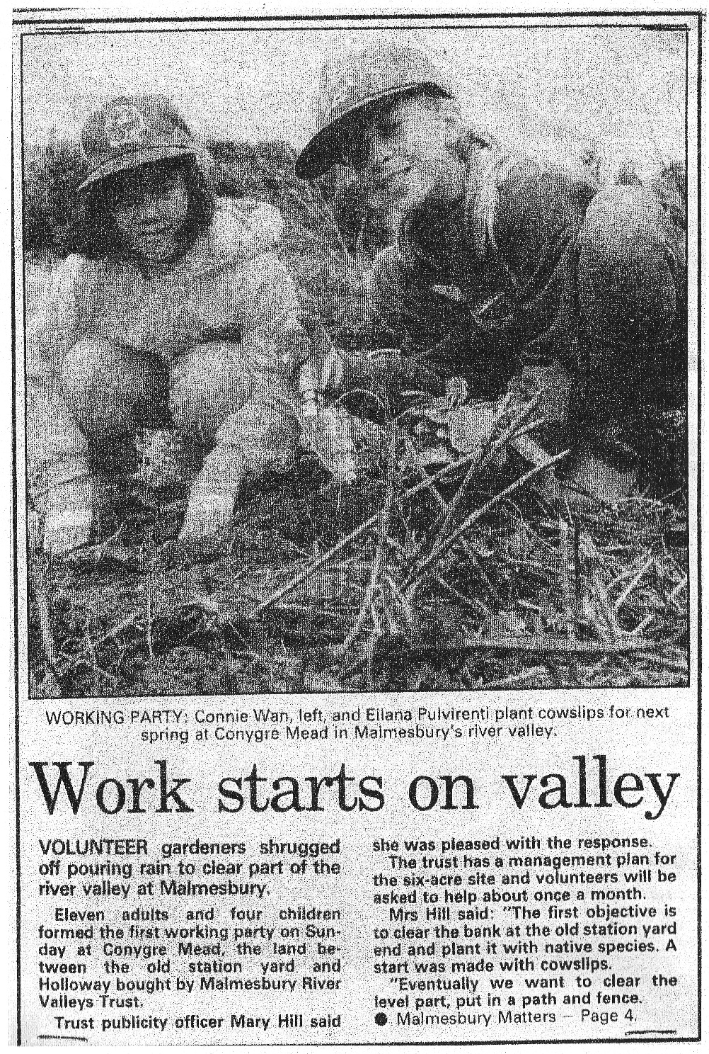 We all came together - the Residents Association, the Civic Trust, the Biological Recording Group of Wiltshire Wildlife Trust, together with the Town Council and NWDC to do what we could to save Conygre Mead for development and make a place for the people of the town to enjoy as a wildlife haven. It was a wonderful experience working with Paul Darby, Noreen Grout, Mary Hill, Peter Howell, David Wall, Frank Hughes Betsy and Peter Little, Paddy Lockstone and Jeff and Sheila Wells who became the founding trustees of the Malmesbury River Valleys Trust. And it was wonderful to feel wide enthusiasm from the people of Malmesbury. It worked because we did it together.