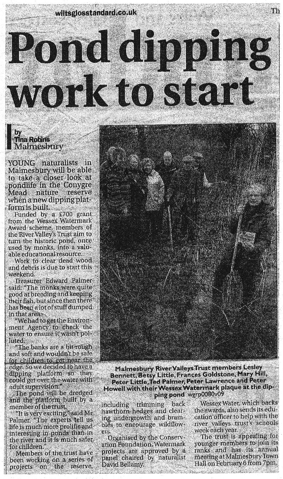 Malmesbury River Valleys Trust was formed and became a charity. Lesley Bennett did much of the hard work setting up its charitable status.